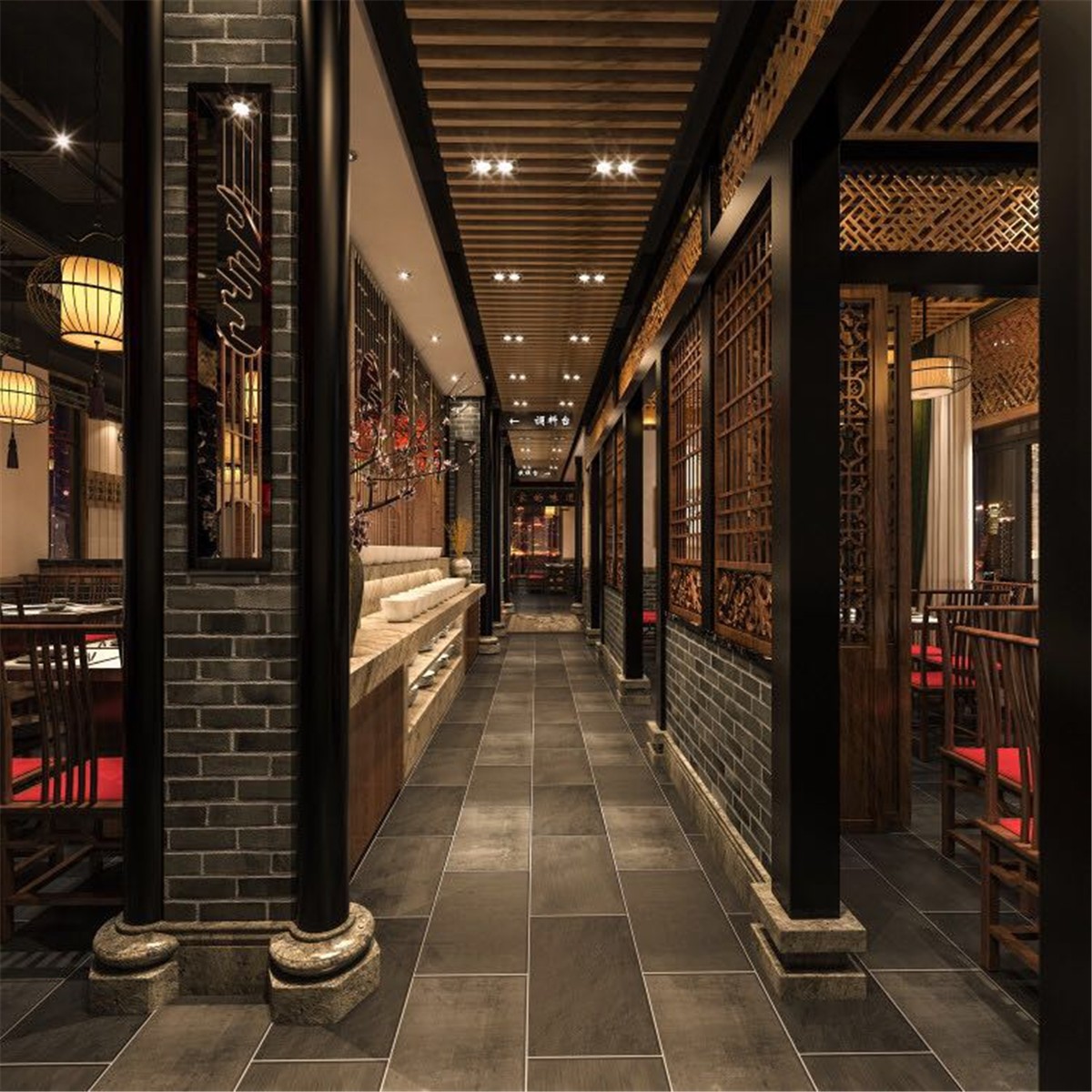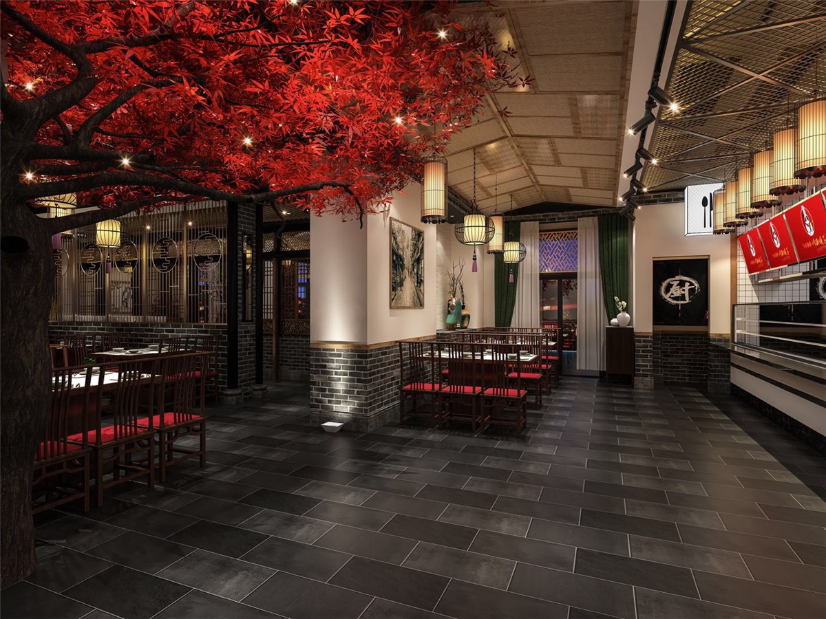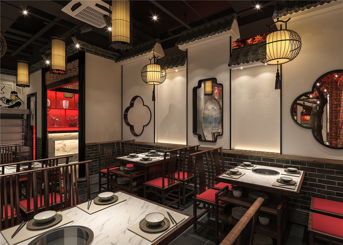 案例介紹:川西壩子是成都著名火鍋連鎖品牌,項目從從設計到施工到落地歷經3個月,將傳統火鍋店特色與中式元素相結合,并綜合川西壩子連鎖店的風格和彭州市本土市民文化風情。